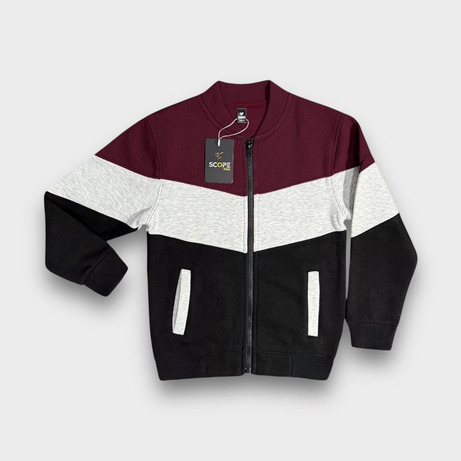 Tricolour Zipper Jacket(Mrn-Gry-Blk)