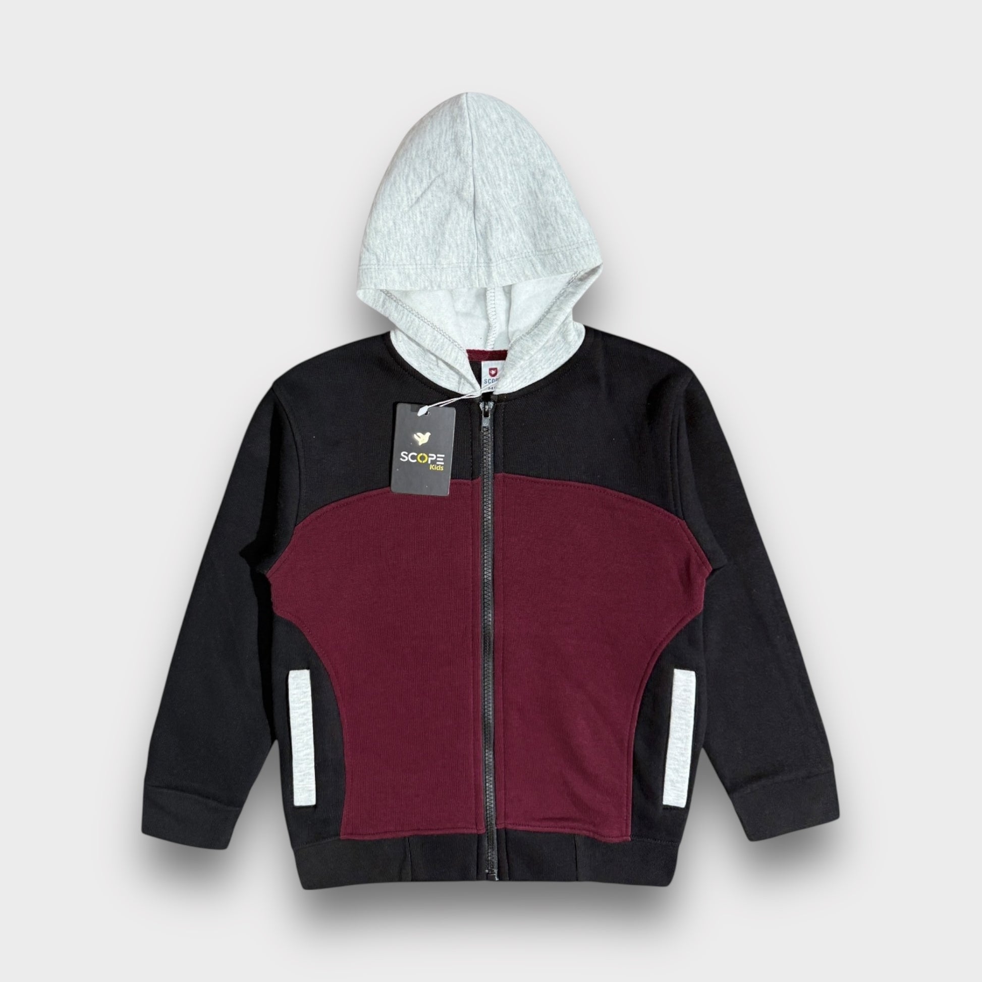 Tricolour Zipper Jacket(Gry-Blk-Maroon)