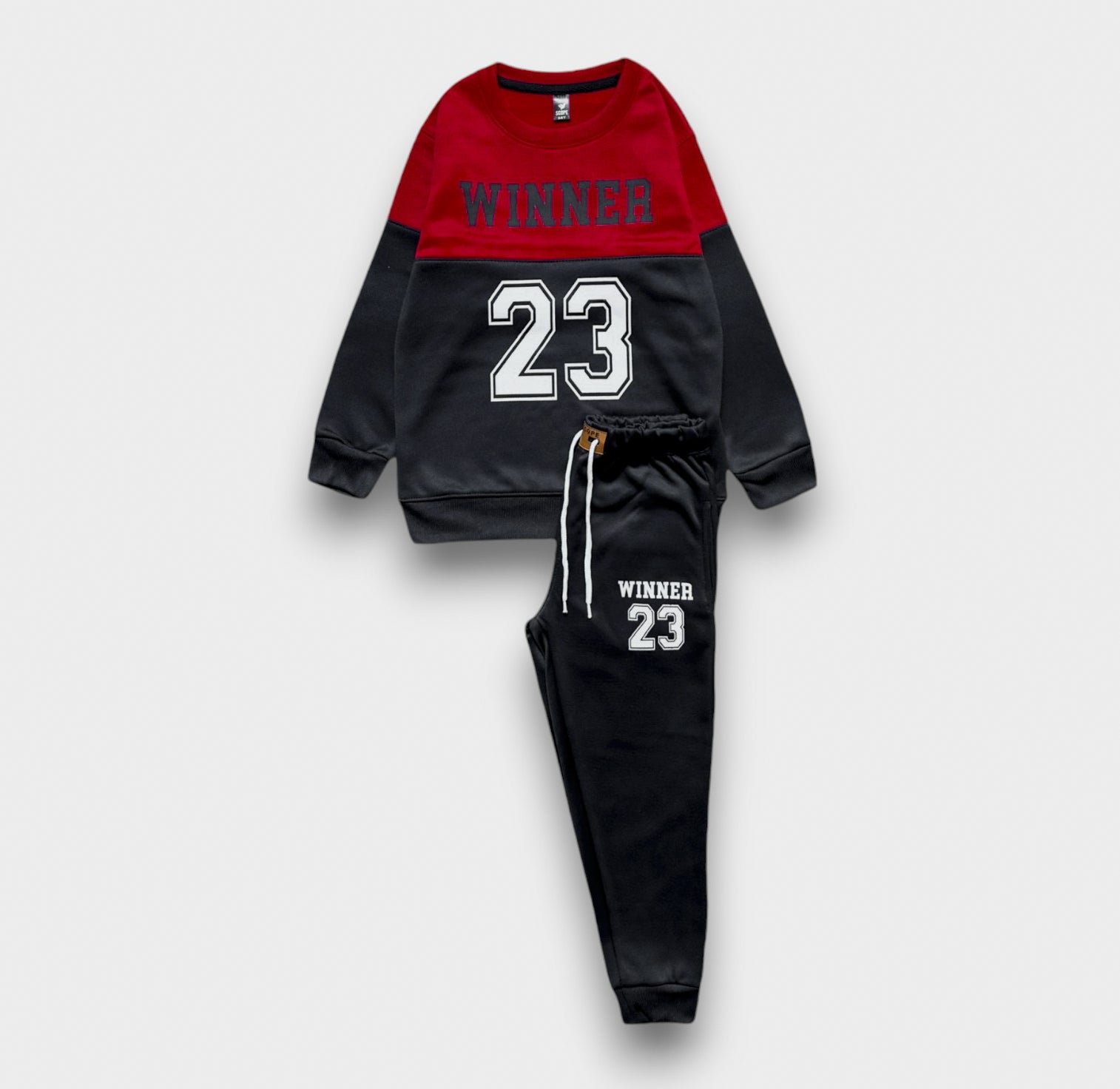 Inspired by sports legends, the Air23 Red Tracksuit is perfect for your little champion. With its bold red and black design and iconic number 23, this set ensures comfort, style, and confidence on and off the court.