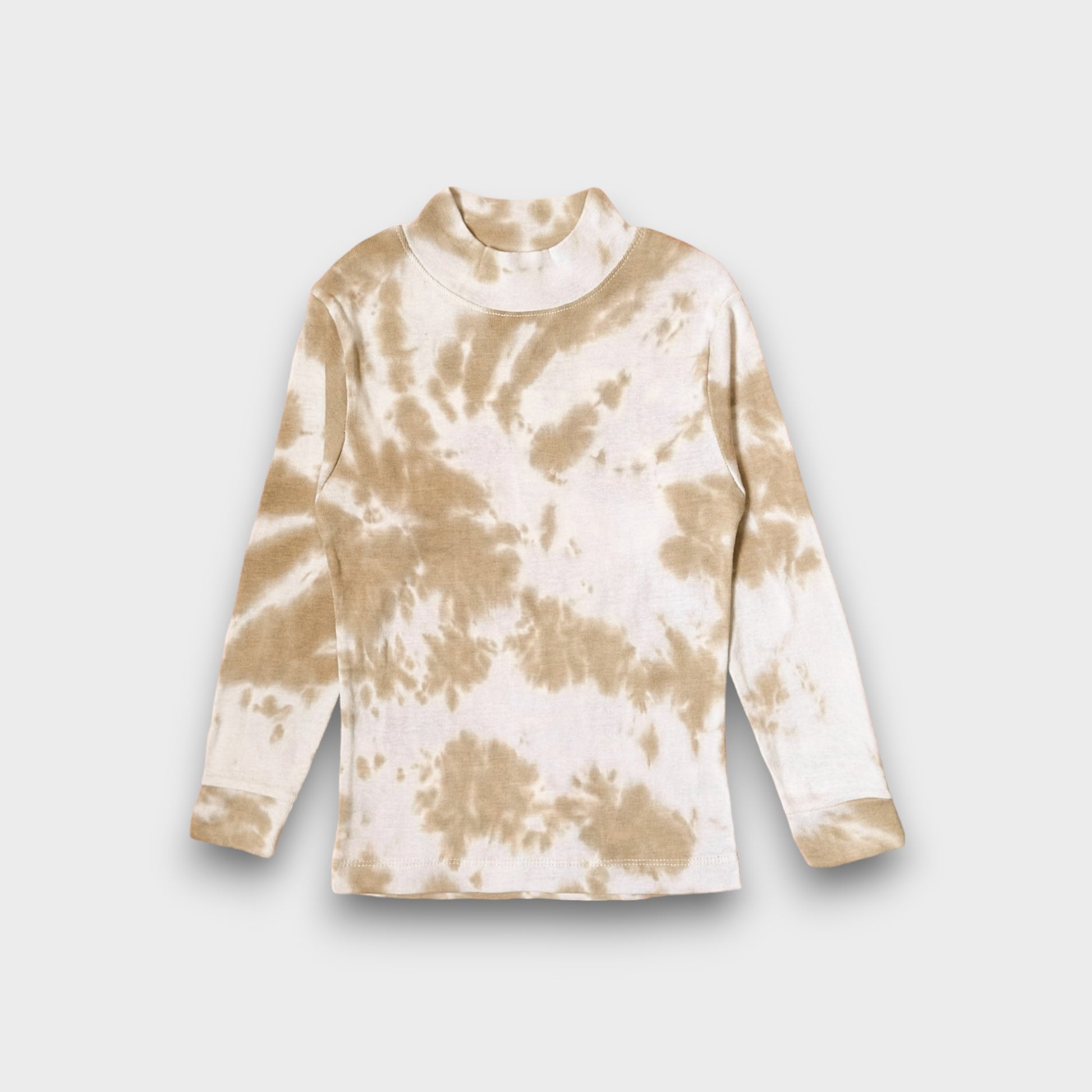 Elevate your little one's wardrobe with the Sandy Swirl Mock Neck! Featuring an earthy tie-dye design in warm beige hues, this top offers a cozy and stylish look perfect for any occasion. Its soft and breathable fabric ensures all-day comfort with a touch of modern charm.