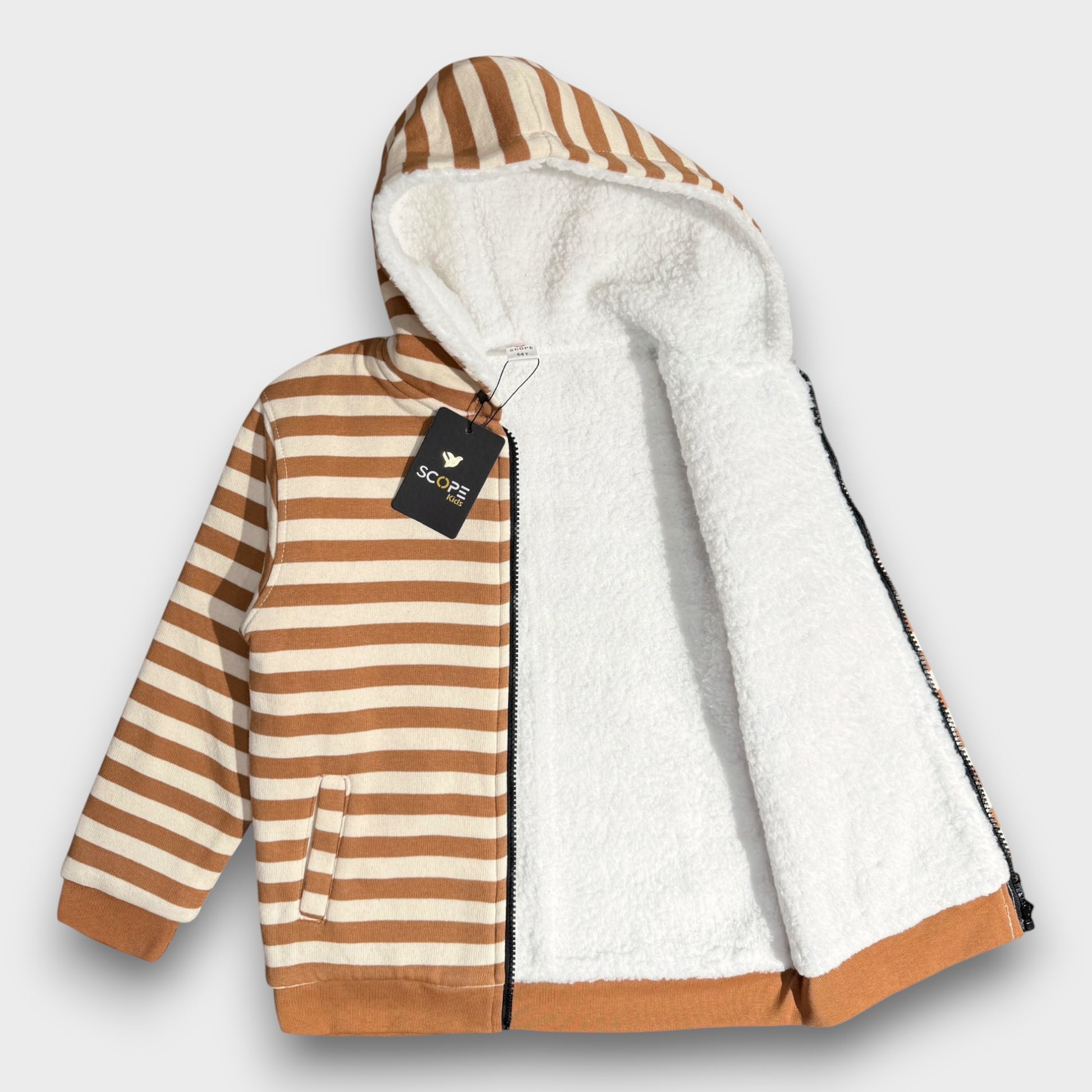 A cozy camel brown fleece jacket with soft fur detailing, designed to keep your little one warm while adding a timeless, stylish touch. Perfect for winter comfort and everyday elegance ❄️🧸